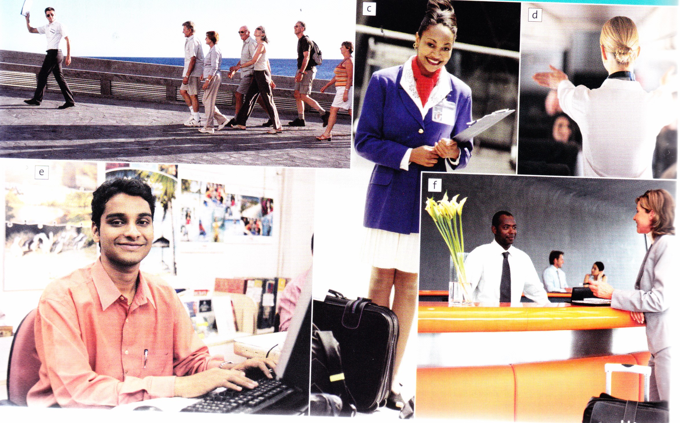 6. pilot, tour guide, receptionist, chef, hotel manager, flight attendant, travel agent, porter, resort rep, tourism information officer, airline check-in clerk.