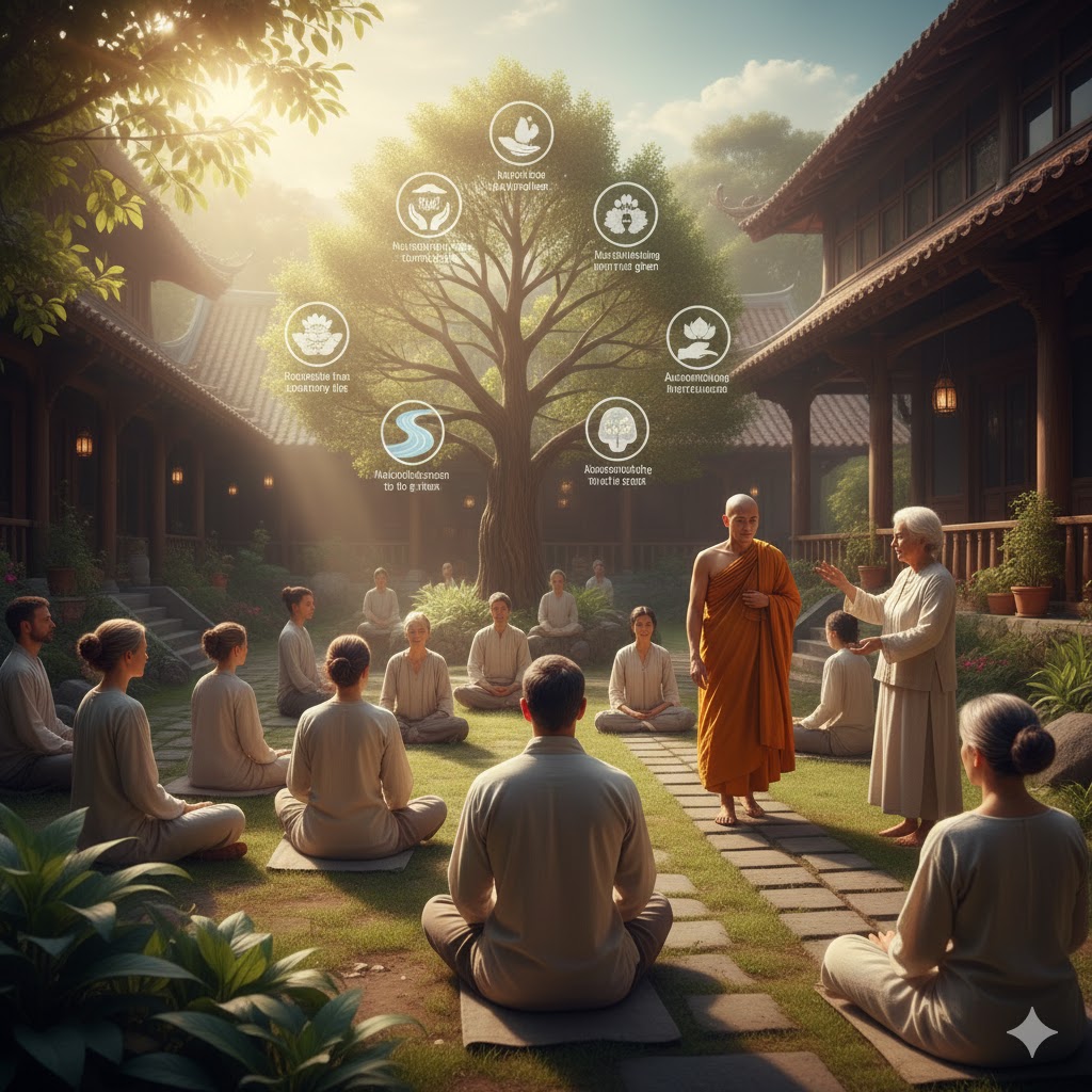 27. The attainment of Nirvana is accomplished by following which key Buddhist teaching?
