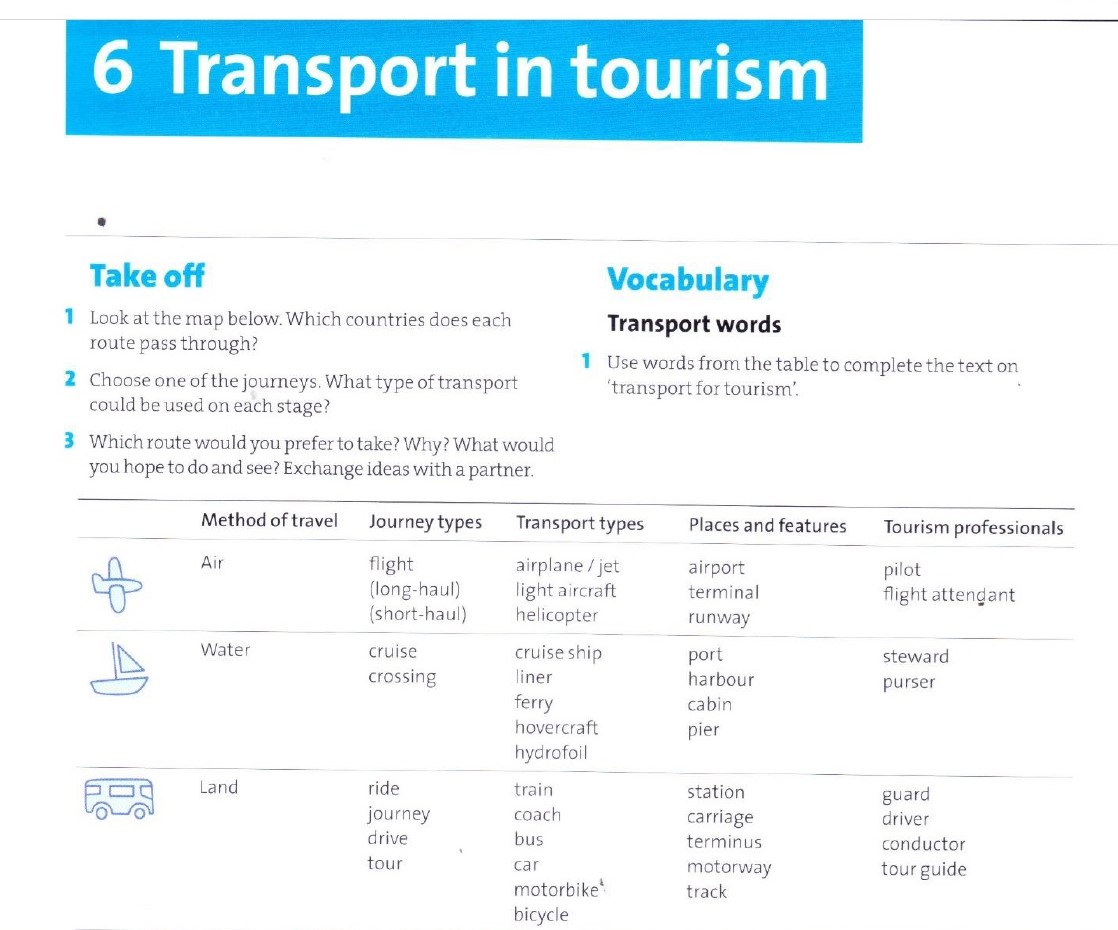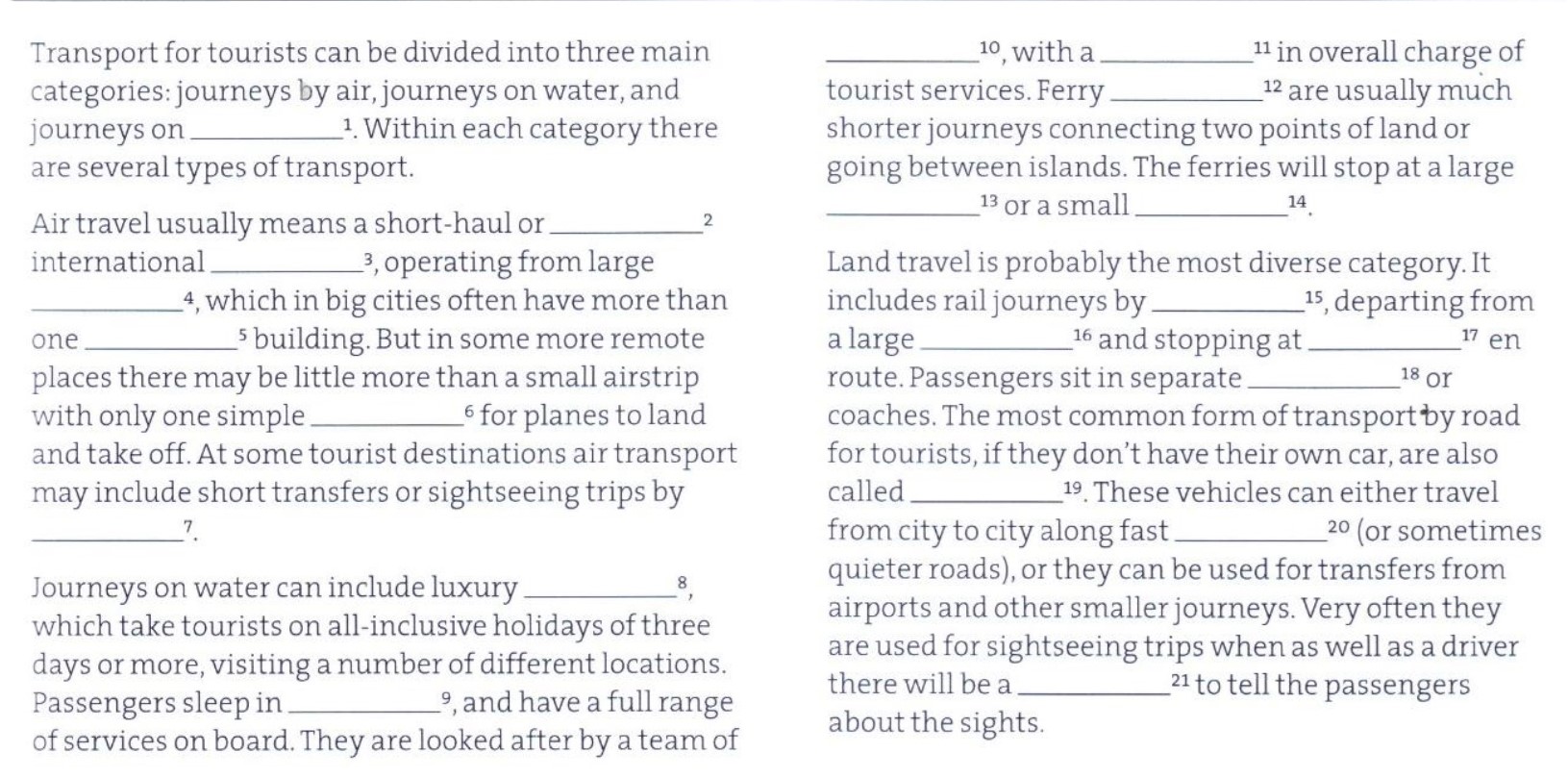 Based on the images provided, complete sentences from the "Transport for tourism" text.