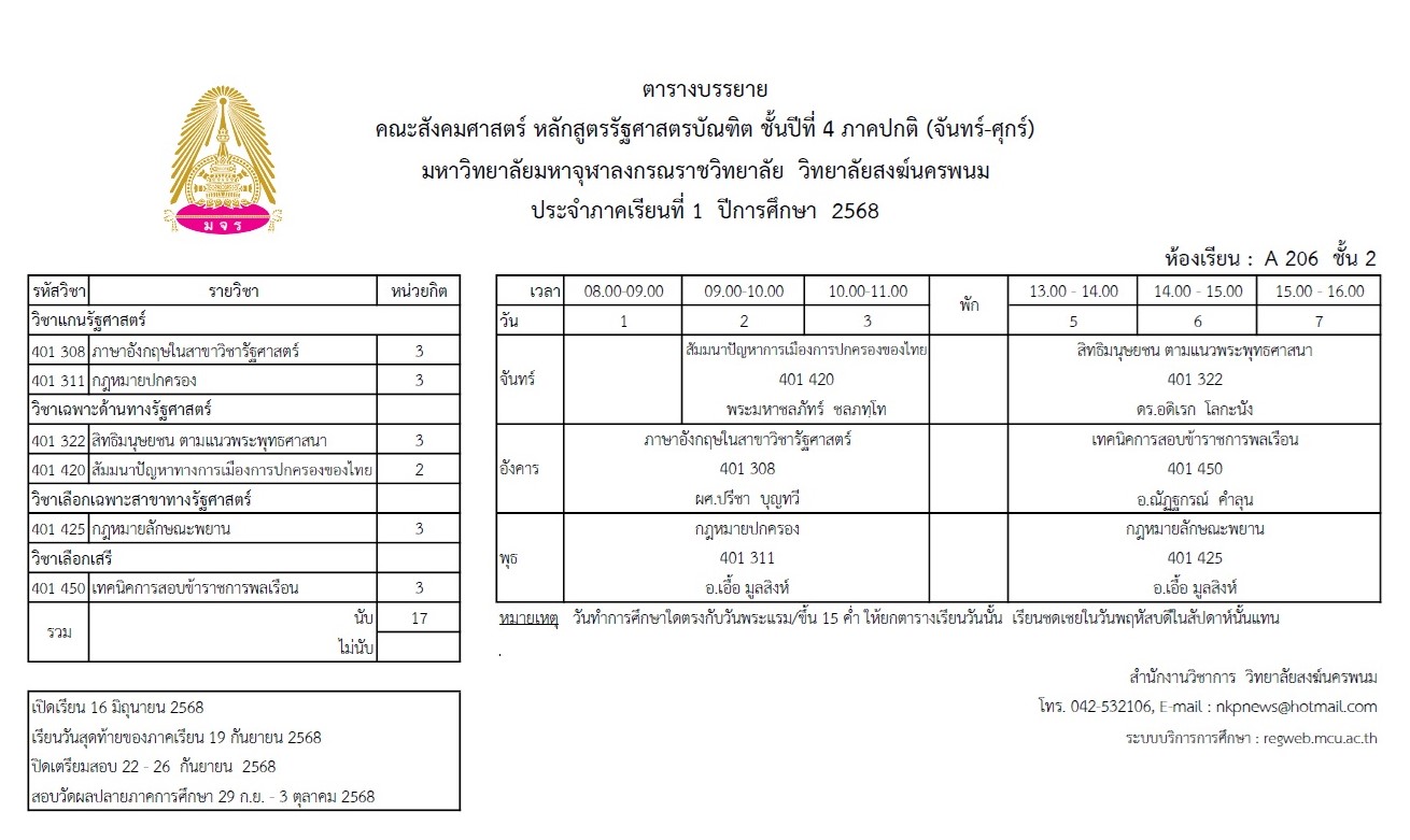 วิชาชั้นปีที่ 4 เทอม 1: Forth Year Students' subjects : 1st semester