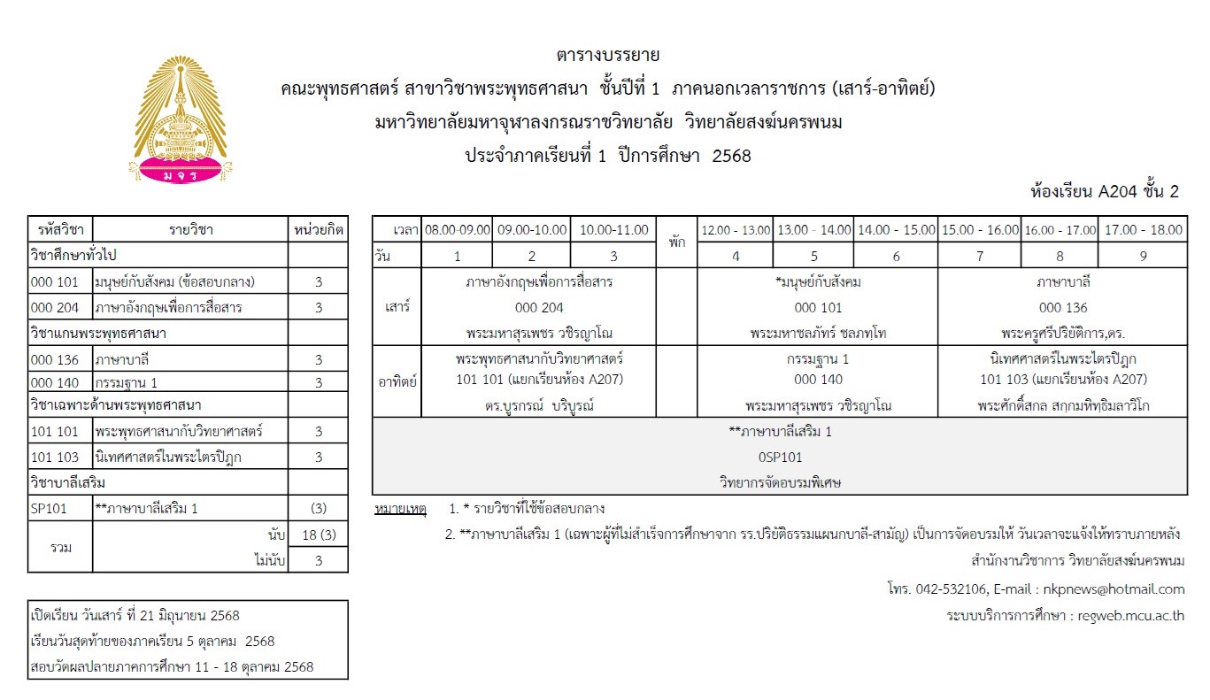 วิชาชั้นปีที่ 1 เทอม 1: First Year Students' subjects : 1st semester